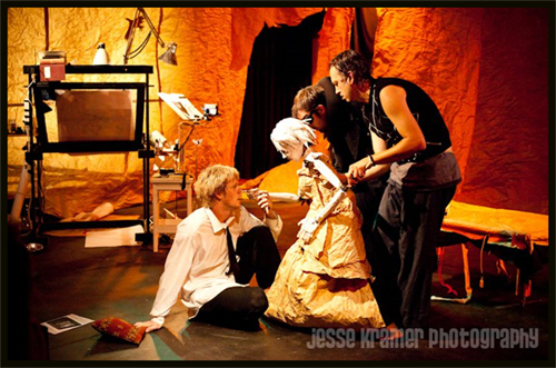 Happy Crate: The Theatre in the District is cool in that way that only not caring about being cool is cool. Do you follow? It cares about art and community. Brian and Trish Notcutt have made an amazing space to work. With almost no money we were able to rehearse and perform and transform a real theatre into our mad lab. We hung brown paper all over it and strung up cardboard crows.