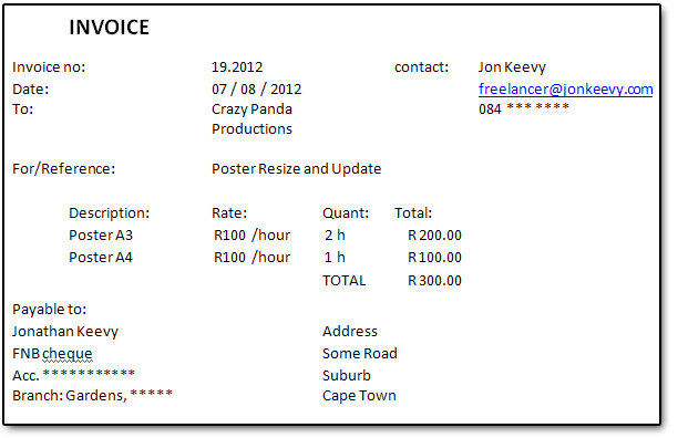 So what I do is make an invoice for every job, even when it’s not requested. Here’s a mock one for poster update: